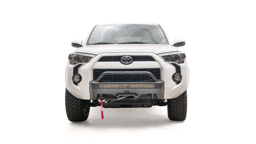 The perfect combination of form and function. The Fab Fours’ Hidden Winch Mount for the 5th Gen Toyota 4-Runner was made for the ultimate adventurous spirit. Allows for Toyota Safety Sense technology. Key features include: winch-ready design; integrated d-ring mounts; retains factory tow hooks, and integrated 30″ LED light bar housing. Always Made in the USA!