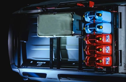 Jerry-can holder or adjustable holder in red color (NO INCLUDED)